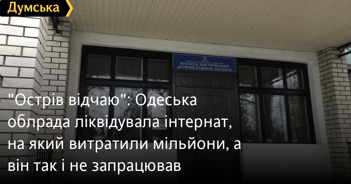 «Острів відчаю»: Одеська облрада ліквідувала інтернат, на який витратили мільйони, а він так і не запрацювавПсихоневрологічний інтернат на Одещині «Острів надії», який так і не запрацював, ліквідували депутати . За свої голоси віддали 52 народних обранці, повідомляє кореспондент «Думської». Ще в 2021 році «Білгород-Дністровський спеціалізований будинок дитини» рішенням облради був перейменований в «Психоневрологічний інтернат «Острів надії». Установа створювалася для тимчасового або постійного проживання осіб зі стійкими інтелектуальними та психічними порушеннями, які за станом здоров'я потребують догляду та медичної допомоги. Інтернат мав запрацювати після капітального ремонту будівлі. Однак після початку повномасштабного вторгнення проект згорнули, і КНП фактично так і не почало функціонувати. Незважаючи на це, з обласного бюджету витратили близько 16 млн грн. У 2021 році виділили 800 тис. грн на виготовлення проекту, а після більше 15 млн грн на ремонт покрівлі. На сесії депутати просили перевірити законність виділених коштів на непрацюючий інтернат, але за цю поправку не проголосували. Крім того, з обласним департаментом охорони здоров'я судиться колишня головна лікарка Тетяна Дзюбенко. Її звільнили з посади в 2020 році, на думку Дзюбенко, зробили це незаконно. І суди різних інстанцій протягом п'яти років (з 2020 по 2025 рр.) незмінно стають на її бік. Феміда раз по раз постановляє не тільки поновити Дзюбенко на посаді, а й виплатити їй зарплату за час вимушеного прогулу, а також моральну компенсацію. Так, 13 листопада 2025 року Одеський апеляційний суд виніс чергову постанову: стягнути з «Острова надії» 436 тисяч гривень середнього заробітку за період з червня 2021-го по квітень 2024 року, а також 5 тисяч гривень компенсації моральної шкоди. На комісії керівник департаменту соціальної політики ОВА Тетяна Дементьєва визнала, що Дзюбенко дійсно була звільнена незаконно, але пояснила, що «відновити справедливість» (у розумінні департаменту) в нинішніх умовах неможливо. У 2024 році Кабмін затвердив стратегію реформування психоневрологічних установ до 2034 року. Документ передбачає поступовий перехід від інтернатних послуг. Мовляв, посадових обов'язків, на які Дзюбенко потрібно повернути, де-факто не існує в новій структурі, а сама установа «Острів надії» так і не відкрилася. СМЕРТЬ РОСІЙСЬКИМ ОКУПАНТАМ! Помітили помилку? Виділяйте слова з помилкою та натискайте control-enter |