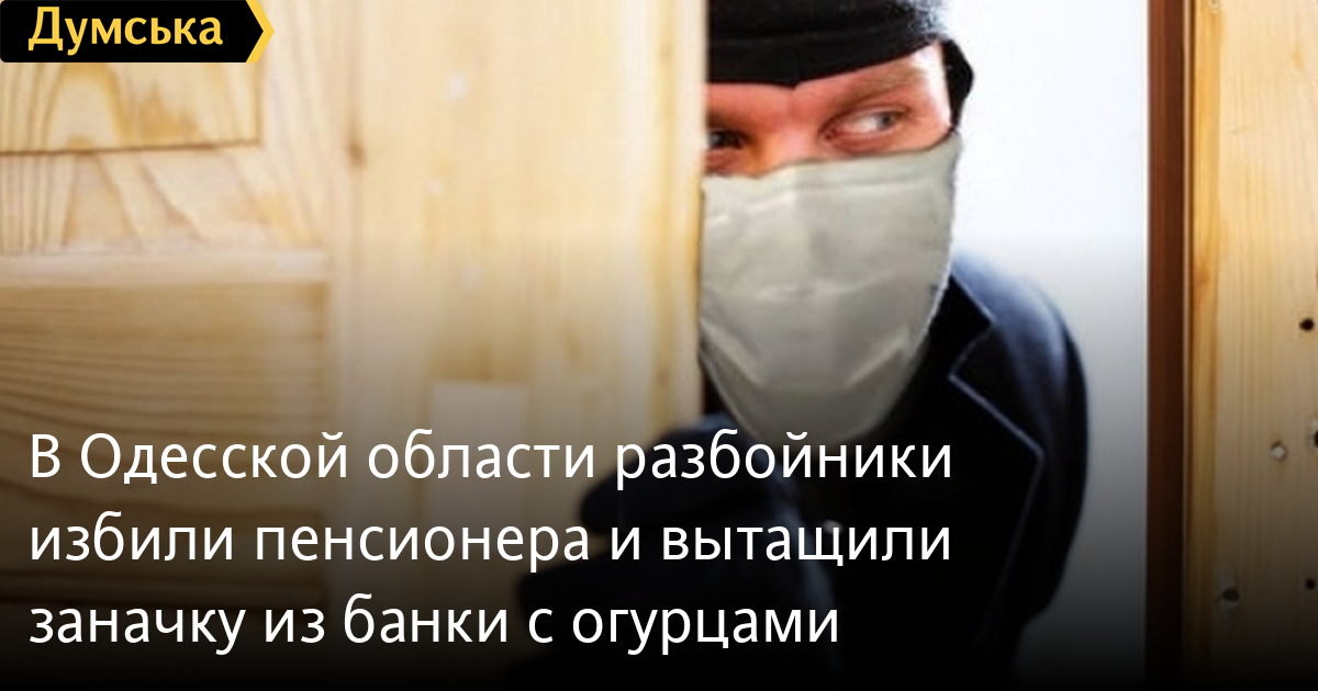 В Одеській області розбійники побили пенсіонера і витягли заначку з банки з огіркамиНевідомі увірвалися до приватного будинку 82-річного жителя села Калаглія в Овідіопольському районі Одеської області та відібрали у пенсіонера 60 тисяч гривень, які той ховав у банці з солоними огірками. Як повідомили «Думській» у поліції, попередньо розбійники зв'язали літнього чоловіка дротами від побутової техніки та катували — сильно побили і надягали на голову поліетиленовий пакет. Роздобувши гроші, зловмисники втекли, їх розшукують. Потерпілий розповів поліцейським, що зберігав гроші, які потроху відкладав із пенсії. Побитого пенсіонера госпіталізували. Помітили помилку? Виділяйте слова з помилкою та натискайте control-enter Новини по цій темі: 29 липня 2025: В Усатово Одеської області сталася перестрілка: поліція працює на місці (відео, оновлено) 28 липня 2025: П'яний на "Ягуарі" або гіпертонік? Звільнений топ-посадовець одеської поліції хоче повернутися на службу 19 червня 2025: Дівчинку, яку шукали сотні одеситів, знайшли вбитою: поліція працює з чоловіком, ймовірно причетним до загибелі 27 травня 2025: Увели гектар в університету: на Одещині засудили земельних аферистів, але без посадки і Хвоста |