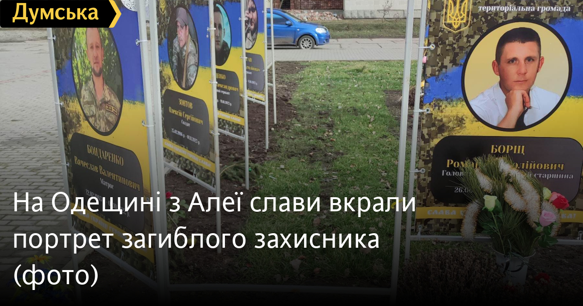Невідомий зловмисник уночі викрав портрет загиблого на фронті військовослужбовця з Алеї слави в Кілії.
