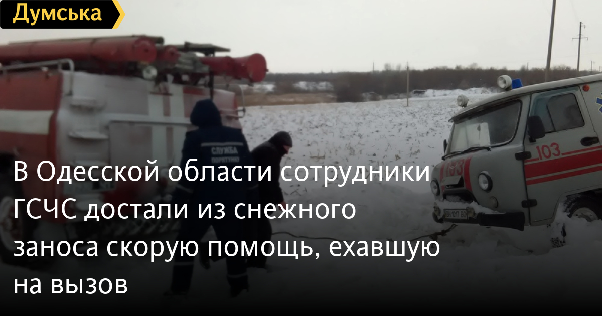 В Одесской области сотрудники ГСЧС достали из снежного заноса скорую помощь, ехавшую на вызовСотрудники ГСЧС извлекли из снежного заноса скорую помощь, спешившую на вызов в село Федоровка Кодымского района. Пожарный автомобиль повышенной проходимости преодолел 6 км, вытащил скорую из сугроба и отбуксировал ее к месту назначения. Врачи забрали больную женщину и поехали обратно в Кодыму. ГСЧСники сопровождали их до безопасного участка. СМЕРТЬ РОССИЙСКИМ ОККУПАНТАМ! Заметили ошибку? Выделяйте слова с ошибкой и нажимайте control-enter |