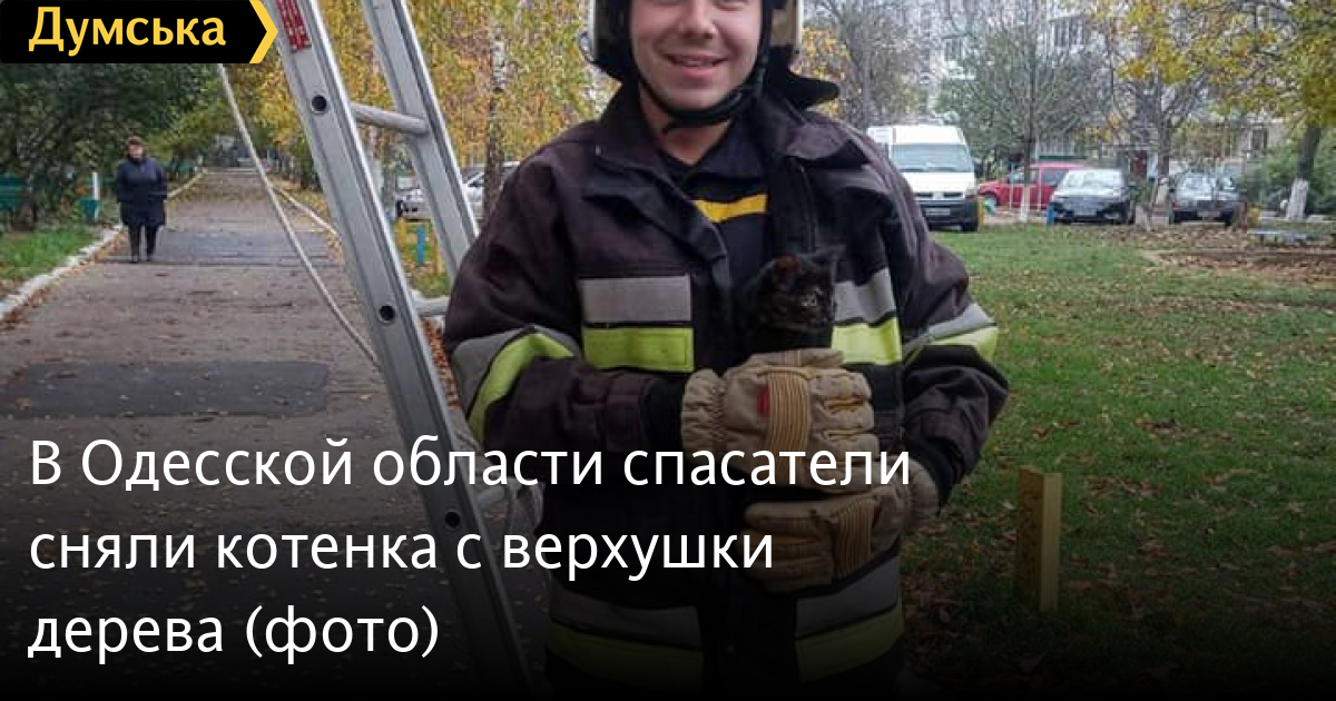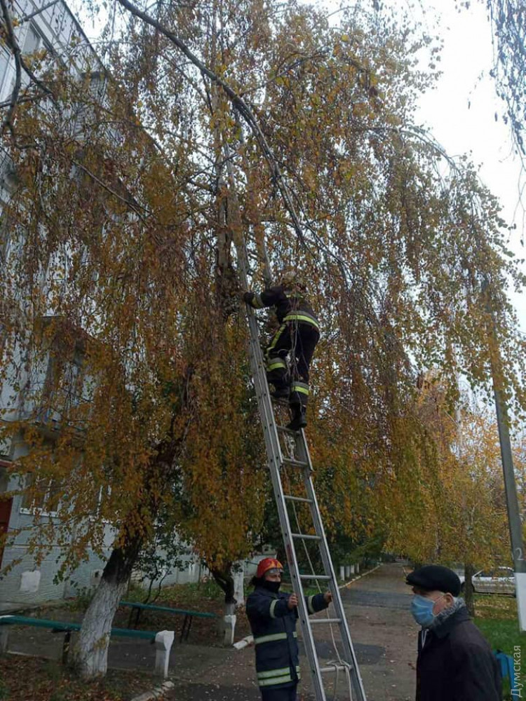 В Подольске спасатели поднялись на 12-метровую высоту и сняли с верхушки дерева перепуганного котенка.