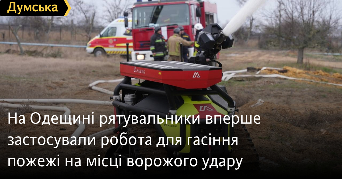 Тактичного робота для гасіння пожежі на місці удару вперше застосували в Одеській області.