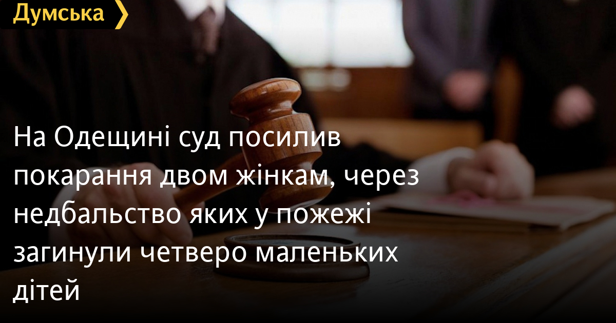 На Одещині суд посилив покарання двом жінкам, через недбальство яких у пожежі загинули четверо маленьких дітейАпеляційний суд змінив вирок двом мешканкам села Чорне Подільського району Одеської області, у яких у пожежі в ніч проти 1 липня 2019 року загинули четверо маленьких дітей. Як повідомили в обласній прокуратурі, суд посилив покарання – з трьох років позбавлення волі з дворічним випробувальним строком до двох років реального ув'язнення. Нагадаємо, фігурантки 18 та 23 років залишили в будинку маленьких дочок і вирушили випивати, після чого заснули. Під час їхньої відсутності у будинку спалахнула пожежа, залишені без нагляду діти загинули. Помітили помилку? Виділяйте слова з помилкою та натискайте control-enter |