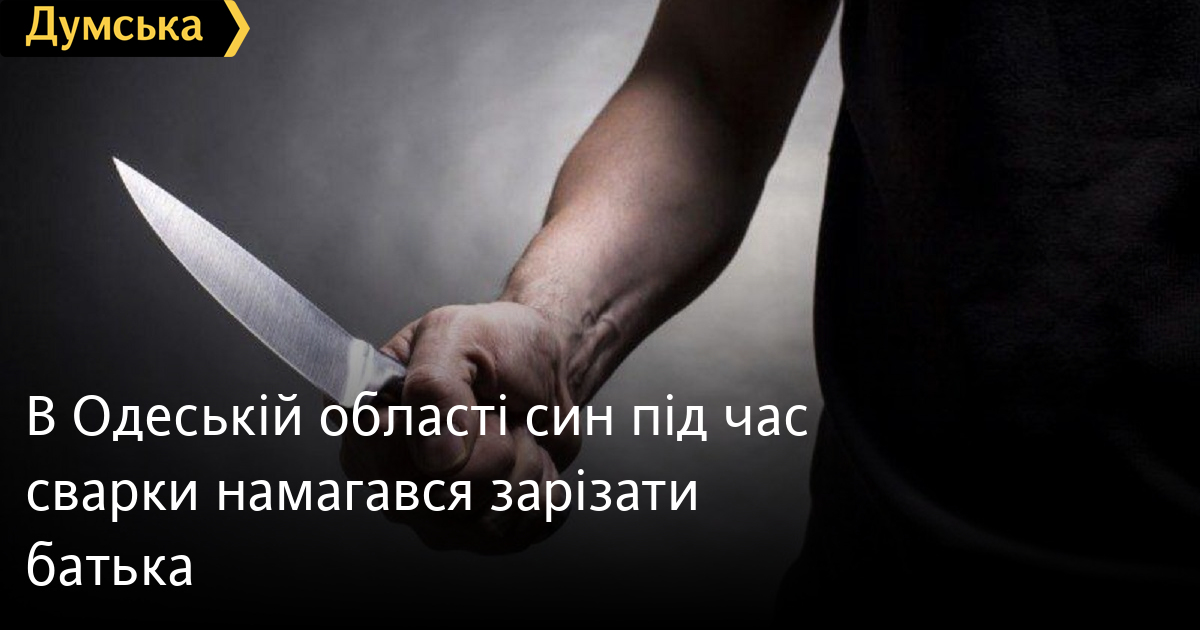 В Одеській області син під час сварки намагався зарізати батькаЖитель Подільського району 1953 року народження дістав ножові поранення внаслідок конфлікту з власним сином. Як повідомили джерела «Думської», родичі посварилися пізно ввечері 29 травня у себе вдома. Під час конфлікту чоловік 1981 року народження схопив ніж і вдарив ним батька. Потерпілого госпіталізували з колото-різаною раною шиї. Нападника затримали. Досудове розслідування розпочали за статтею про нанесення тяжких тілесних ушкоджень (ч.1 ст.121 КК України). Чоловіку загрожує від п'яти до восьми років позбавлення волі. Помітили помилку? Виділяйте слова з помилкою та натискайте control-enter |