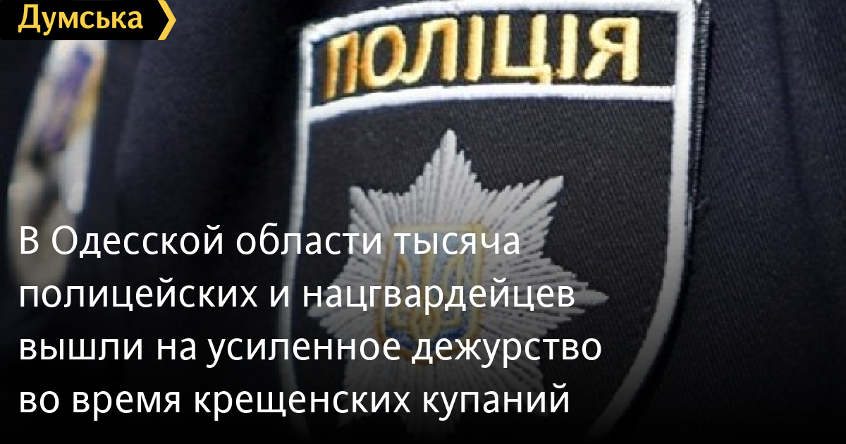 В Одесской области тысяча полицейских и нацгвардейцев вышли на усиленное дежурство во время крещенских купанийНа Крещение в Одесской области проведение богослужений и праздничных купаний охраняет тысяча правоохранителей, которые вышли сегодня на усиленное дежурство. В ГУНП сообщили, что полицейские и нацгвардейцы следят за правопорядком в 498 церквях и храмах в регионе, а также дежурят на 40 местах массовых купаний. В Одессе 300 правоохранителей патрулируют пляжи «Золотой берег», «Ланжерон» и «Лузановка», где запланированы омовения. Также дополнительные патрули вышли на улицы Одессы и населенных пунктов области для обеспечения общественного порядка. СМЕРТЬ РОССИЙСКИМ ОККУПАНТАМ! Заметили ошибку? Выделяйте слова с ошибкой и нажимайте control-enter |