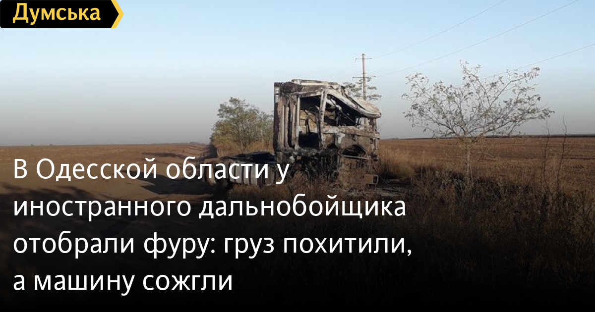В Одесской области у иностранного дальнобойщика отобрали фуру: груз похитили, а машину сожглиПолицейские задержали подозреваемого в преступлении, которое было совершено в конце августа возле Одессы. Как сообщили в пресс-службе ГУНП, неизвестные под угрозой насилия завладели фурой дальнобойщика, перевозившего турецкий текстиль. Самого иностранца вывезли в Кировоградскую область и ночью отпустили. Мужчина добрался до ближайшей автозаправки, где вызвал полицию. Установлено, что прицеп с товаром правонарушители перевезли в Овидиопольский район, а грузовик отогнали в Белгород-Днестровский район, где подожгли, чтобы скрыть преступление. В ходе розыскных мероприятий полицейские задержали предполагаемого участника преступления по месту проживания в Одессе. Ему сообщили о подозрении по части 2 ст. 194 УК Украины (умышленное уничтожение или повреждение имущества путем поджога). Кроме того, по факту незаконного завладения транспортным средством кировоградские полицейские открыли уголовное производство по части 3 ст. 289 УК. Сейчас ведется розыск других преступников. СМЕРТЬ РОССИЙСКИМ ОККУПАНТАМ! Заметили ошибку? Выделяйте слова с ошибкой и нажимайте control-enter Новости по этой теме: 4 августа 2025: Экспертизу не сделали, камеры не отсмотрели: одесские волонтеры жалуются на саботаж полиции в расследовании убийства собаки 29 июля 2025: В Усатово Одесской области произошла перестрелка: полиция работает на месте (видео, обновлено) 28 июля 2025: Пьяный на «Ягуаре» или гипертоник? Уволенный топ-чиновник одесской полиции хочет вернуться на службу 19 июня 2025: Девочку, которую искали сотни одесситов, нашли убитой: полиция работает с мужчиной, вероятно, причастным к гибели |