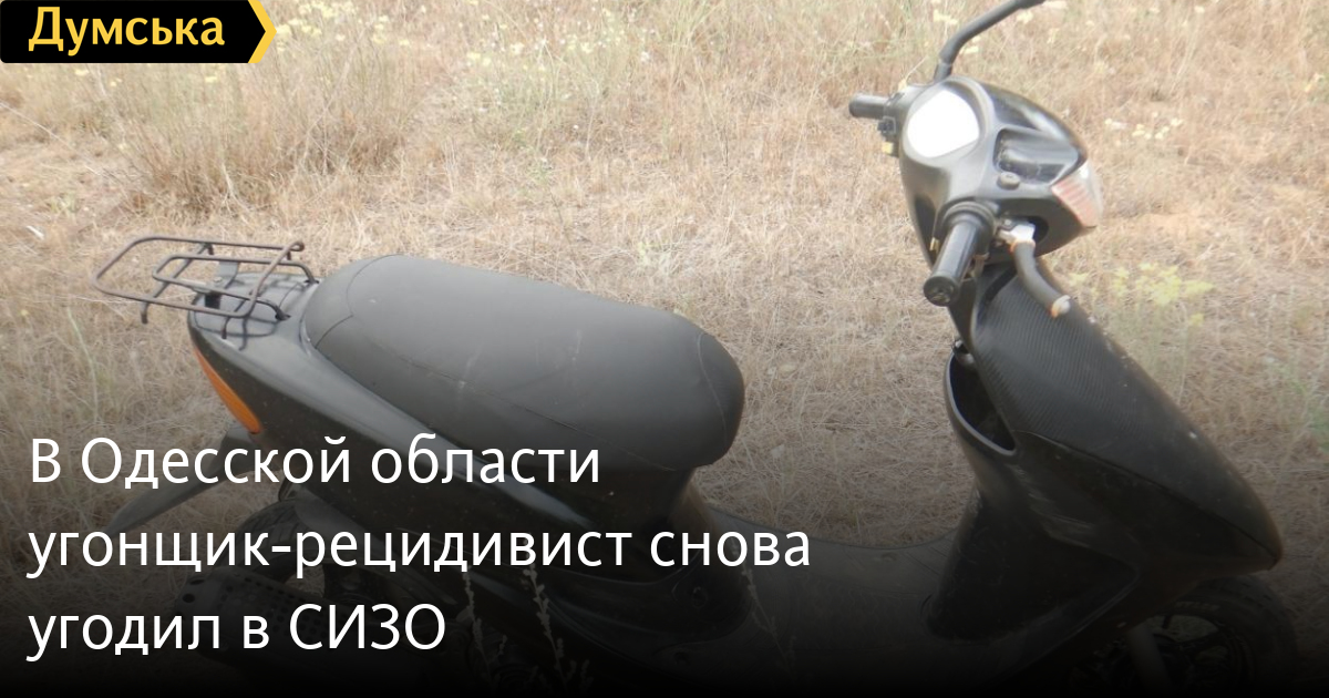 29-річного мешканця Білгорода-Дністровського підозрюють у викраденні мопеда Honda Dio. Скутер поліцейські вже повернули власнику, повідомляють у прес-службі поліції на Одещині. Господар залишив мопед біля магазину та пішов по своїх справах. Повернувшись – виявив зникнення. На пошуки викрадача у поліції пішло менше доби. Скутер він ховав у дворі. Неодноразово засудженого за аналогічні злочини та крадіжки чоловіка відправили до СІЗО. Йому повідомили про підозру в незаконному заволодінні транспортним засобом, скоєному повторно. Відповідно до частини 2 статті 289 Кримінального кодексу України, йому загрожує до восьми років ув'язнення з конфіскацією майна або без нього.