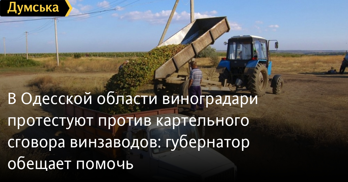Группа агропредприятий юга Одесской области, специализирующихся на технических сортах винограда, выступила против ценовой политики ряда винзаводов — те якобы сговорились покупать их продукцию по цене, которая ниже себестоимости.