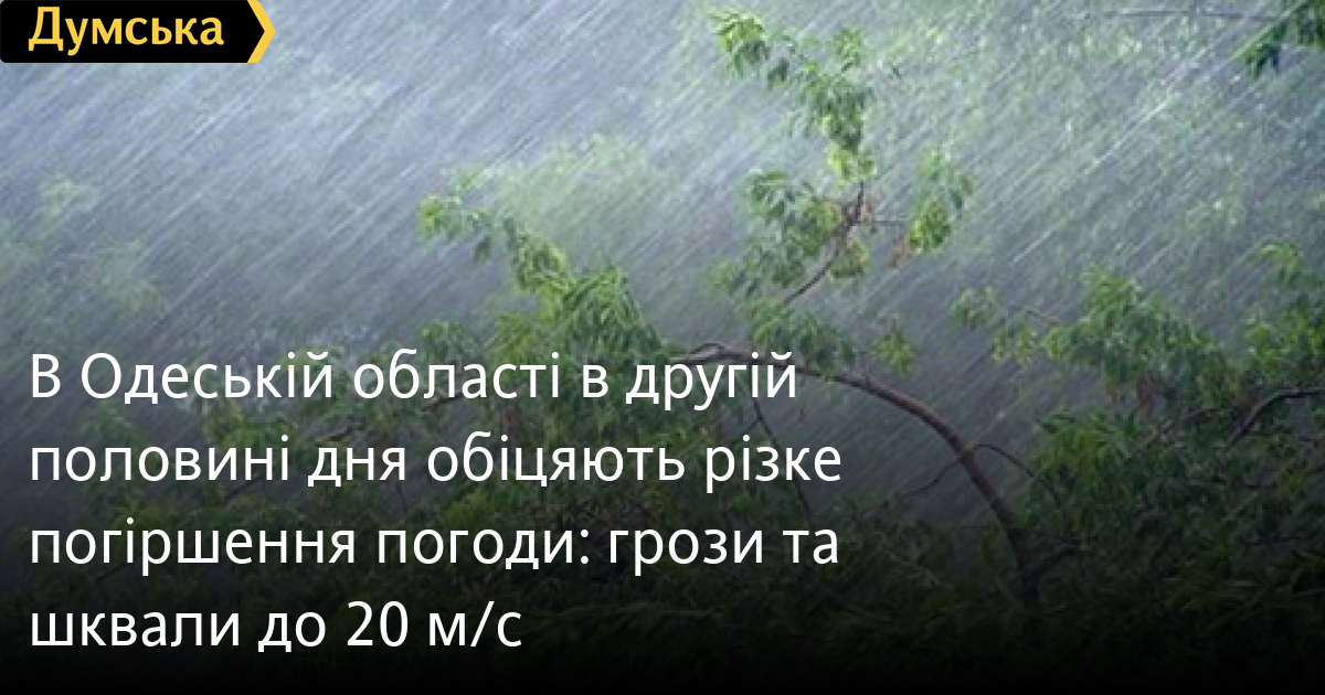 В Одеській області в другій половині дня обіцяють різке погіршення погоди: грози та шквали до 20 м/сРізке погіршення погоди прогнозують синоптики жителям Одеської області у другій половині дня 7 травня. Як повідомили в Гідрометцентрі України, за дві-три години не тільки в нашому регіоні, а й на всій території України очікуються грози, град, місцями шквали, 15-20 м/с. Така погода протримається до кінця дня по всій країні, крім південно-східних областей. Помітили помилку? Виділяйте слова з помилкою та натискайте control-enter Новини по цій темі: 7 листопада 2025: До +16, але з дощами: в Одесі прогнозують погіршення погоди 29 жовтня 2025: Котельні готові: Одеса увімкне опалення за два тижні, а початок листопада буде аномально теплим 6 жовтня 2025: Через погіршення погоди школи та садочки Одеської області переводять на дистанційне навчання 1 жовтня 2025: Катастрофа, яку можна було попередити (блог) |