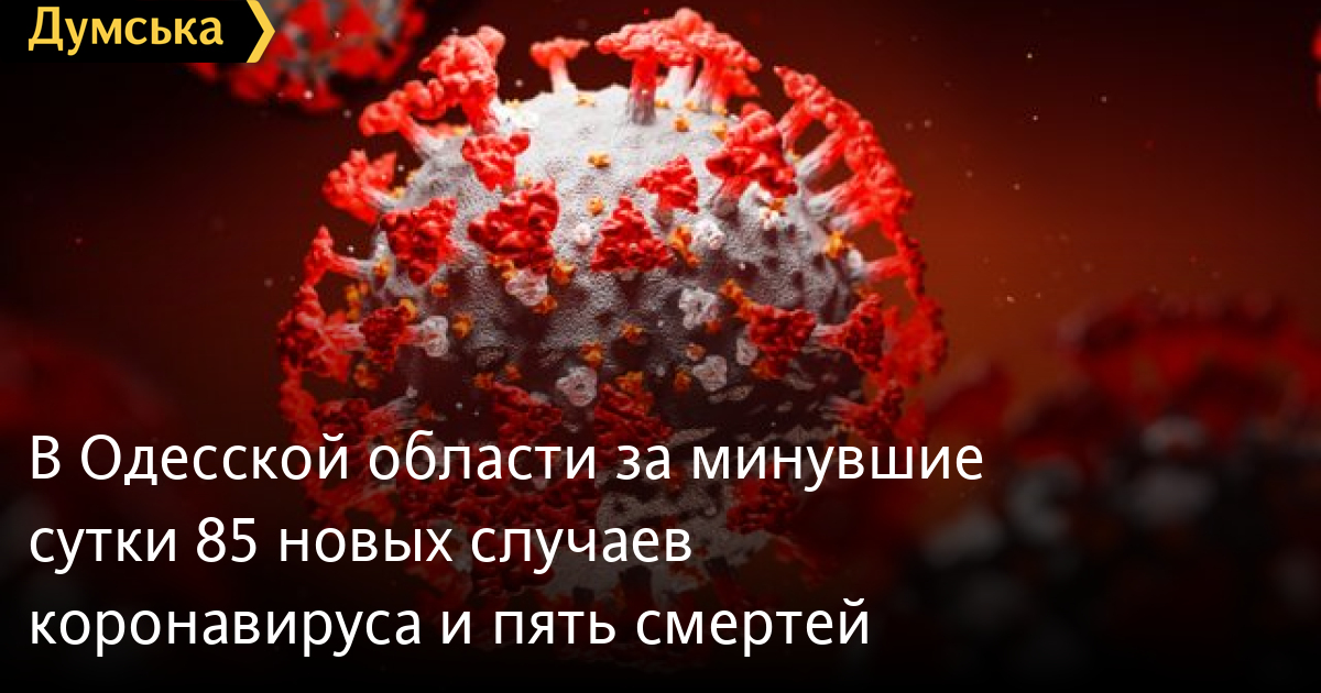 За минувшие сутки в Одесской области зарегистрировано 85 новых случаев заражения коронавирусной инфекцией.