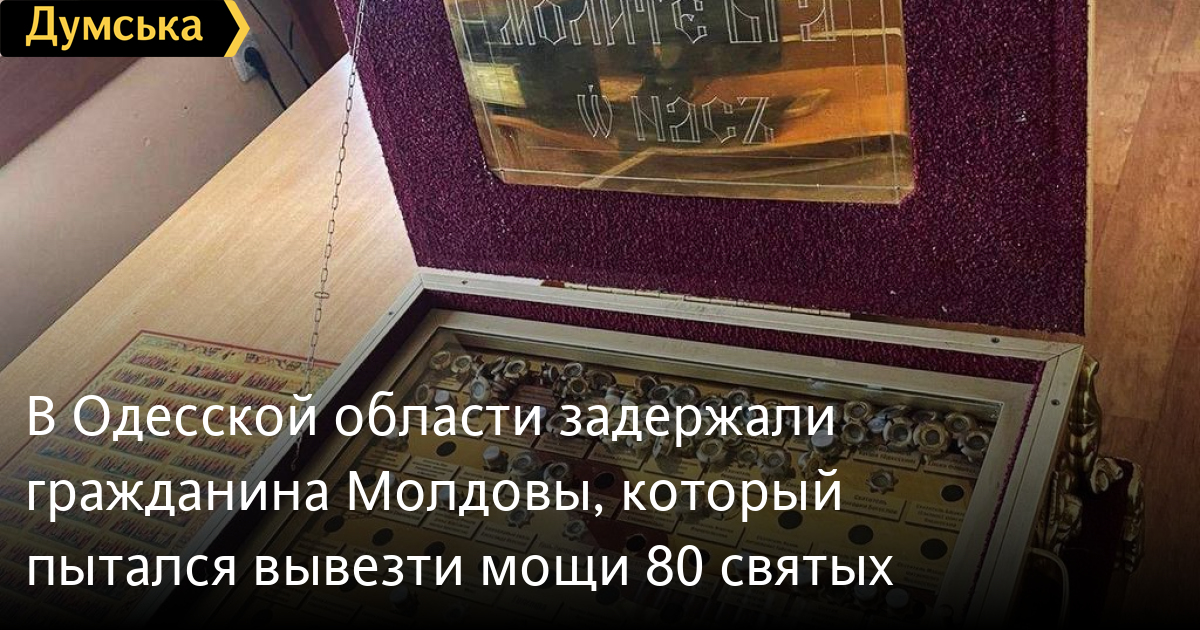 В Одесской области задержали гражданина Молдовы, который пытался вывезти мощи 80 святыхГражданина Молдовы, который пытался вывезти из Украины мощи 80 святых и церковную утварь, задержали пограничники в Одесской области. Как сообщили в Госпогранслужбе, контрабандиста обнаружили в пункте пропуска «Табаки». Он пытался провезти ковчег с мощами 80 святых, икону и храмовый аналой. По словам правонарушителя, он вез их в храм Покрова Пресвятой Богородицы, якобы на праздник. Небрежная перевозка ковчега привела к выпадению мощевиков со своих мест. Пограничники сообщили о преступлении в полицию и СБУ. Заметили ошибку? Выделяйте слова с ошибкой и нажимайте control-enter |