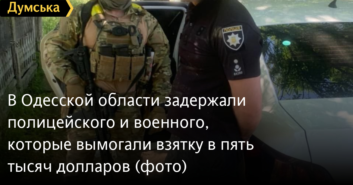 Правоохранители задержали в Одесской области начальника отделения полиции и военнослужащего при получении взятки в две тысячи долларов. Это был первый транш неправомерной выгоды в размере 5000 долларов, которую они вымогали у военных.