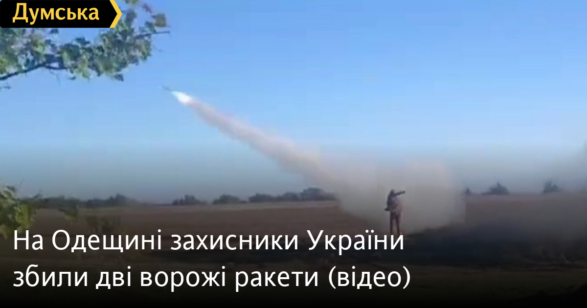 Момент збиття першої ракети зафіксовано на відео, яке раніше опублікував телеграмканал «Думської».