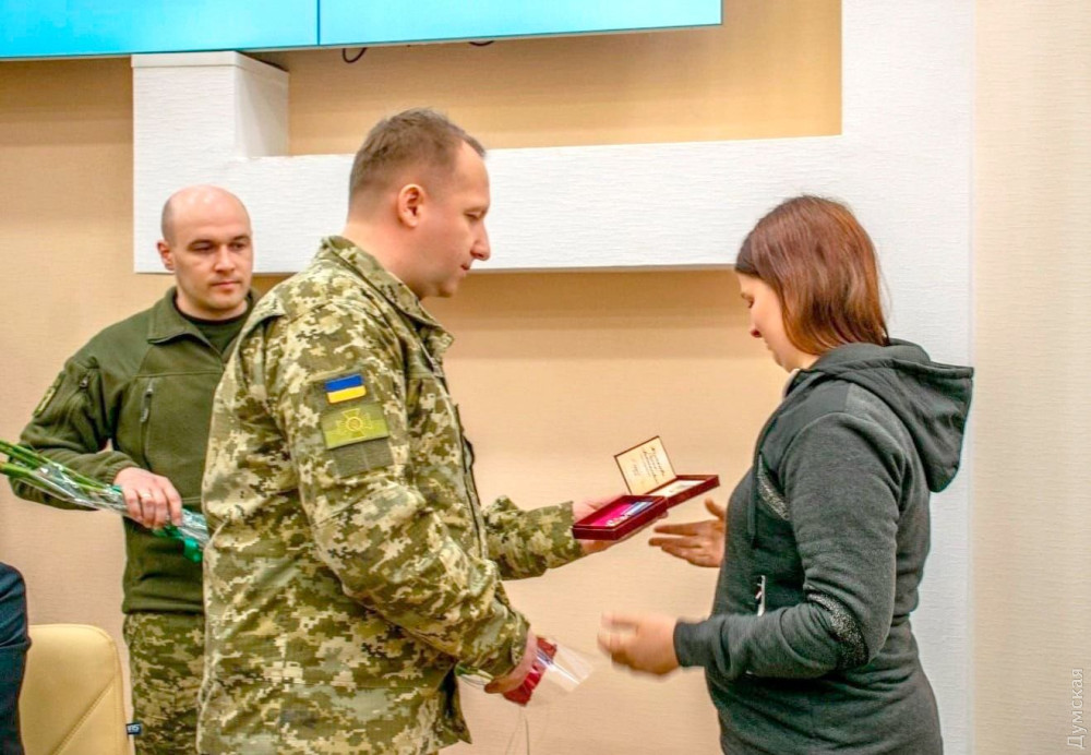 У відомстві повідомили, що начальник Південного регіонального управління ДПСУ Сергій Мул у Южному вручив нагороду дружині прикордонника.