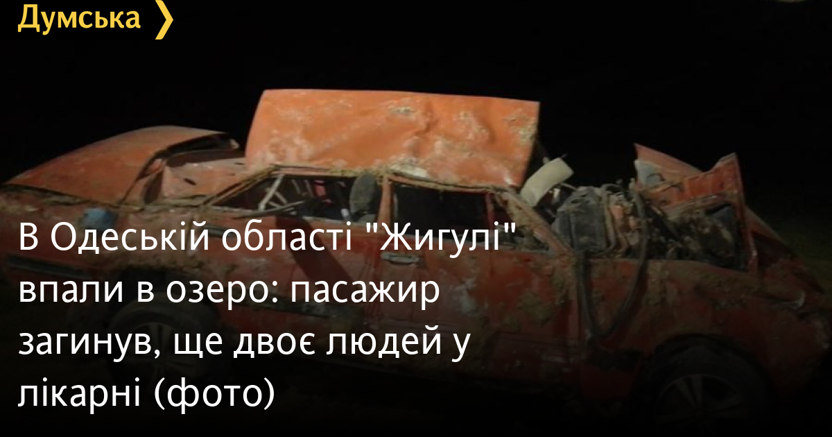 В Одеській області «Жигулі» впали в озеро: пасажир загинув, ще двоє людей у лікарніЛегковий ВАЗ вилетів із дороги в урвище і впав в озеро Сасик біля села Борисівка в Татарбунарській громаді ввечері 16 серпня. У поліції повідомили, що внаслідок ДТП загинув 31-річний пасажир машини. 40-річного водія та 26-річного пасажира госпіталізовано з різними травмами. Аварія сталася через те, що автомобіліст не впорався з керуванням. У нього взяли тест на алкогольне сп'яніння. Помітили помилку? Виділяйте слова з помилкою та натискайте control-enter |