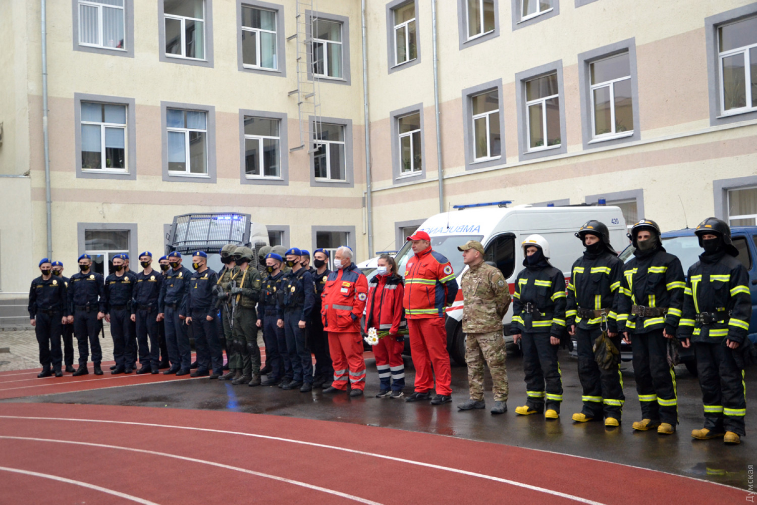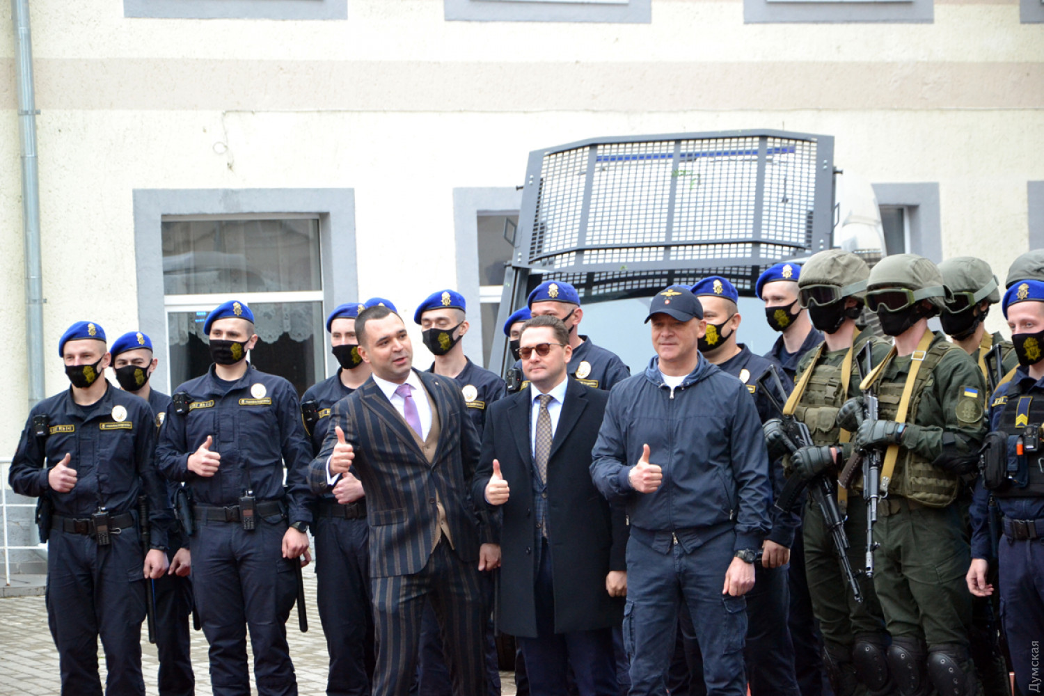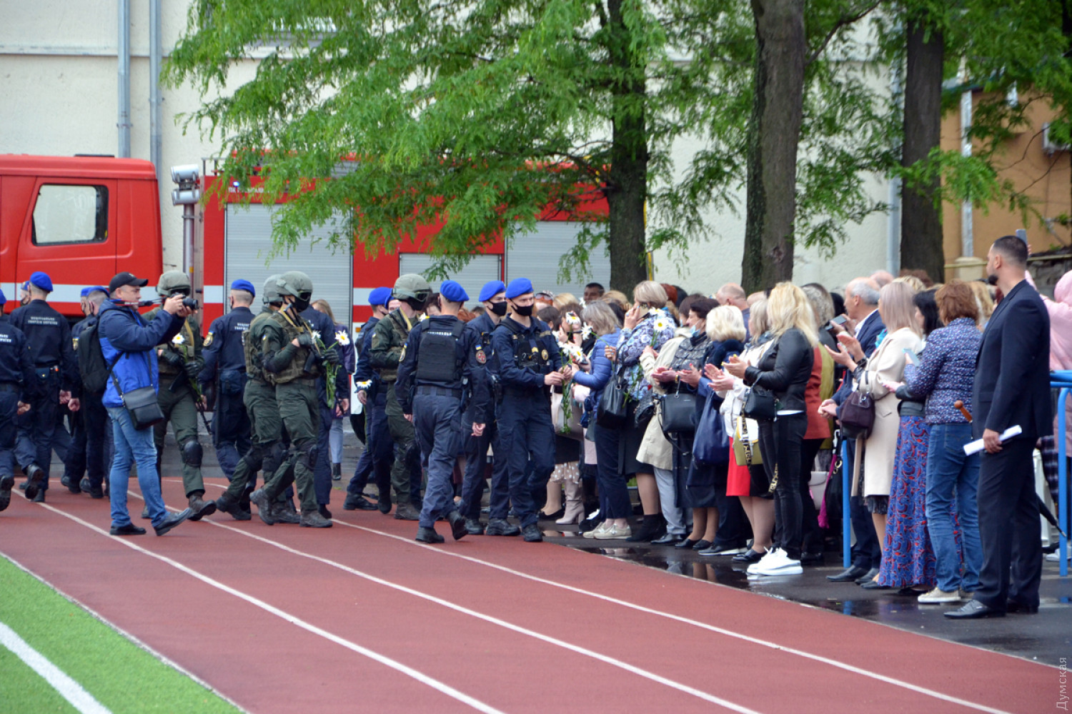 В гимназии № 4, что на улице Болгарской, 88, правоохранители провели учения по освобождению заложников. Как передает корреспондент «Думской», по легенде учений, школу с учениками захватил вооруженный человек, на место прибыли бойцы Нацгвардии, которые обеспечивали оцепление периметра, кареты скорой помощи и спецподразделение полиции «Корд», хотя для таких целей в Украине существует Антитеррористический центр СБУ и специально обученное спецподразделение «Альфа». Операция длилась недолго и завершилась успешно — условных заложников освободили. Отметим, что учения были явно отработанные заранее и больше напоминали спектакль. Ведущий комментировал происходящее в микрофон, а после завершения школьники подарили спасателям и гвардейцам цветы. Главную роль исполнил городской голова Геннадий Труханов, который с удовольствием позировал перед камерами и поблагодарил оперативные службы за участие в учениях. Директор департамента образования и науки Елена Буйневич отметила, что такие учения будут проходить регулярно во всех школах Одессы. Фото и видео — Андрей Колисниченко СМЕРТЬ РОСІЙСЬКИМ ОКУПАНТАМ! Помітили помилку? Виділяйте слова з помилкою та натискайте control-enter |