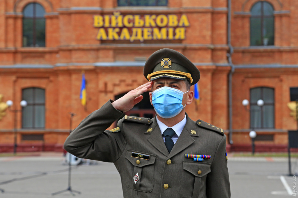 «Одесская академия — один из лучших военных вузов Украины, выпускающий настоящих профессионалов. Сегодня у многих из вас я вижу ордена, которых нет даже у меня. Но я хотел бы сказать спасибо вашим родным и близким — матерям и отцам, которые поддержали ваш выбор защищать страну в сложное для нее время. С сегодняшнего дня вы уже не курсанты, с сегодняшнего дня вы командиры, за вами будут идти люди, они будут идти в бой и слушать ваши указания, все полученные знания вы должны использовать для того, чтобы спасти жизни людей и победить врага — Российскую Федерацию».