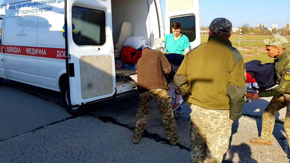 Вертолет с раненым 21-летним военнослужащим приземлился сегодня в Одессе.