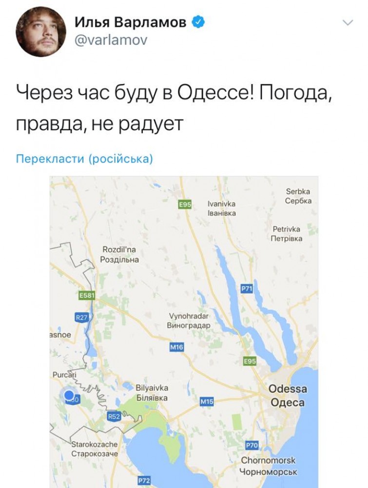 «Через час буду в Одессе! Погода, правда, не радует», — анонсировал он свой приезд в Twitter.