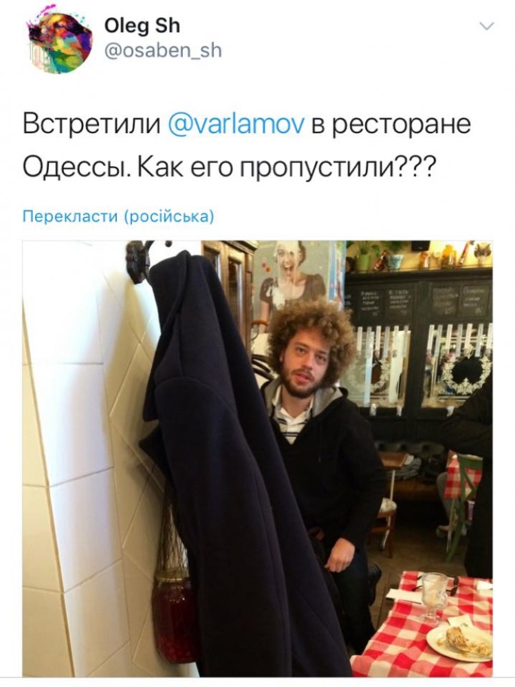 ОБНОВЛЕНО в 20:58. Стерненко сообщает, что история с визитом Варламова в Одессу оказалась фейком. Опубликованное сегодня фото из одесского ресторана сделано больше года назад.