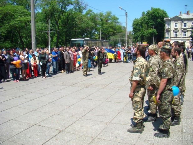 Вчера, 19 мая, в Одессу из зоны АТО вернулись бойцы мотопехотного батальона 28-й бригады (бывший 18-й отдельный батальон территориальной обороны Одесской области).