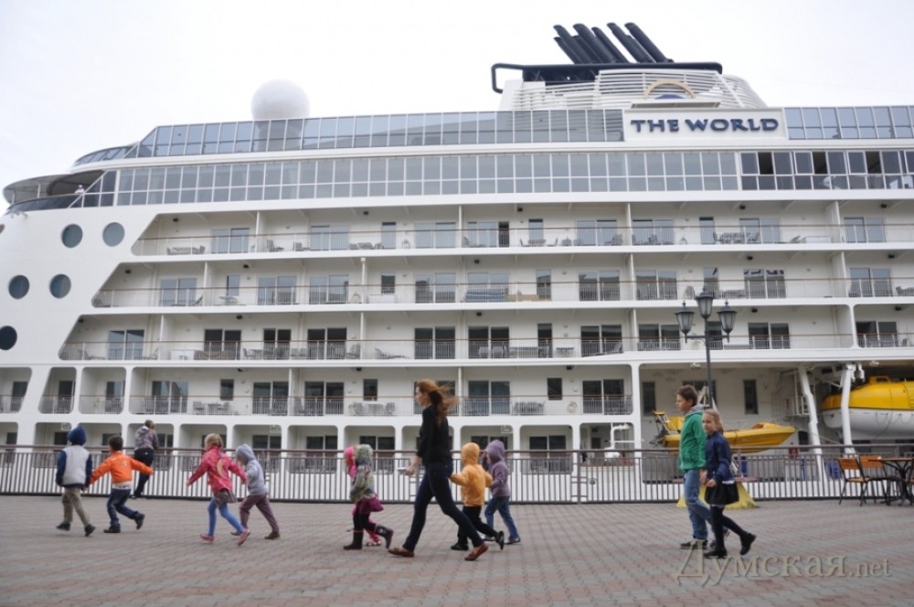 В Одессе гостит теплоход The World, пассажиры которого одновременно являются владельцами жилых апартаментов на борту и акционерами фирмы-судовладельца. Как сообщает пресс-служба порта, этот лайнер — первое морское пассажирское судно, спроектированное по принципу жилого дома. Он построен на верфях Швеции и Норвегии в 2002-м году. Длина – 196 м, ходит под флагом Багамских островов. «Распорядок дня «ответственных квартиросъемщиков» The World несколько отличается от расписанных по часам будней туристов на обычных круизных лайнерах. Всего на 11 пассажирских палубах судна разместились 110 апартаментов площадью от 100 до 300 кв. метров, со спальнями, кухнями, ванными, балконами. Их хозяева могут круглогодично находиться на судне (при этом не забывая вносить «квартплату», которая идет на содержание судна и команды), либо подсаживаться на борт в любой точке земного шара. Они также могут сдавать свои апартаменты кому пожелают», — говорится в сообщении.
