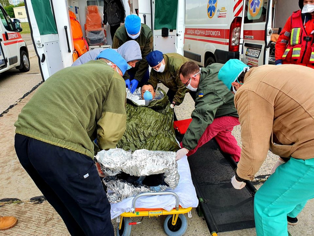Как сообщил волонтер Андрей Танцюра, на нем прибыло 12 раненых. Четверо находятся в тяжелом состоянии.