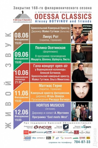 В Одессу съедутся звезды мировой классической сцены на фестиваль Odessa Classics0 В Одессе готовятся к масштабному музыкальному фестивалю Odessa Classics. Это уже второй международный фестиваль, на который должны приехать более сотни участников из Эстонии, России, Германии, Бельгии и Украины. Выступления артистов пройдут с 8 по 12 июня. Основной фестивальной сценой станет Филармония. А 10 июня у Воронцовской колоннады состоится гала-концерт, в котором примут участие Бельгийский камерный оркестр и Камерный оркестр Одесской Филармонии. Музыканты исполнят популярную классическую музыку и саундтреки к кинофильмам, среди которых и произведения итальянского композитора Эннио Морриконе. Запланированы также концерты в Музее западного и восточного искусства и Литературном музее. При этом в рамках фестиваля состоятся различные творческие встречи и мастер-классы. Полную программу можно посмотреть тут. СМЕРТЬ РОСІЙСЬКИМ ОКУПАНТАМ!