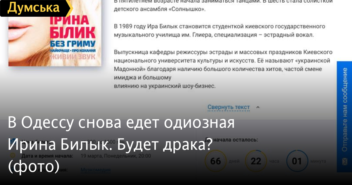 Одиозная певица Ирина Билык намерена снова выступить в Одессе.