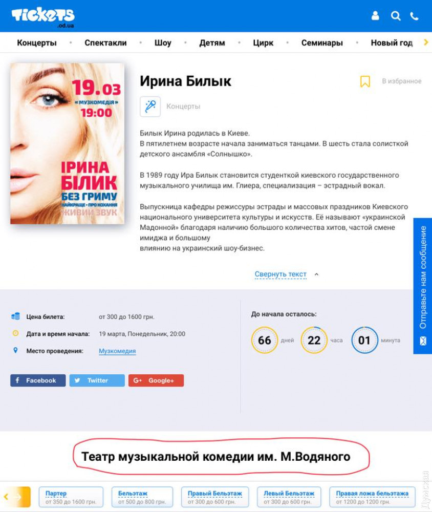 Как гласят афиши, концерт в театре музкомедии имени Водяного запланирован на 19 марта.
