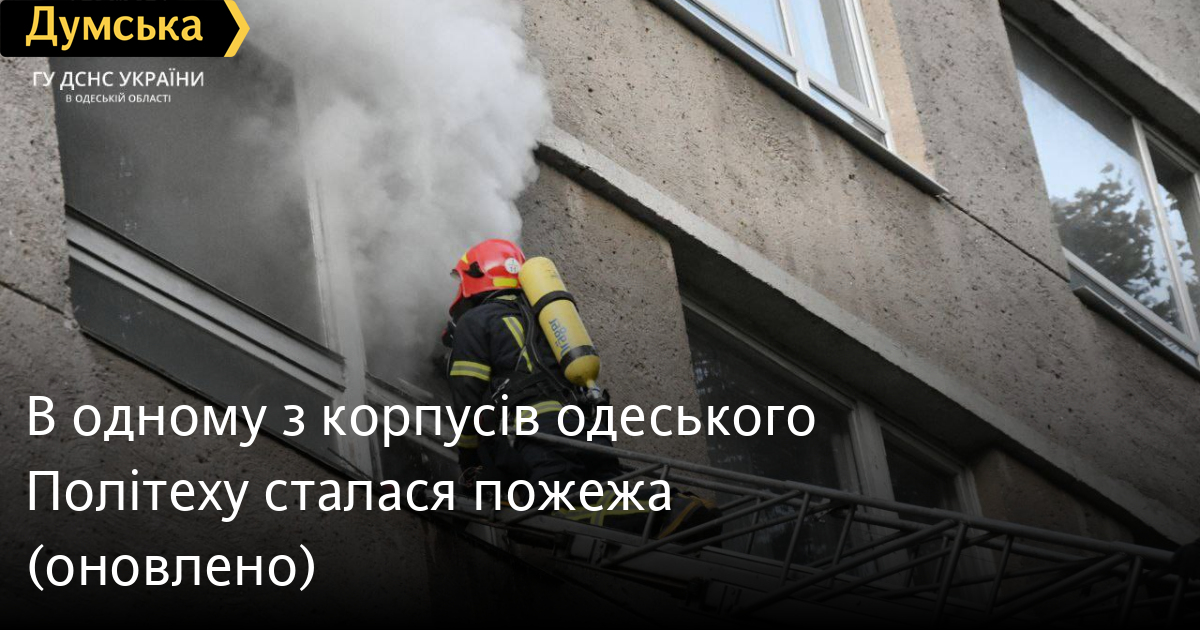 В одному з корпусів одеського Політеху сталася пожежа (оновлено)Пожежа в одному з корпусів одеського Політеху на проспекті Шевченка спалахнула сьогодні ввечері. Очевидці повідомляють, що на територію вишу заїхало близько десятка пожежних машин. У пресслужбі регіонального управління ДСНС підтвердили інформацію про пожежу. Подробиці — пізніше. ОНОВЛЕНО. Дзвінок до Служби порятунку надійшов о 17:48. Пожежні підрозділи були відправлені на місце за підвищеним номером виклику. Рятувальники встановили, що горить електрообладнання на третьому поверсі шестиповерхового навчального корпусу радіоелектроніки. Пожежу загасили о 18:19. Жертв немає. Ймовірна причина — аварійний режим роботи зарядного пристрою. На місці працювали 14 одиниць спецтехніки та 55 вогнеборців. Помітили помилку? Виділяйте слова з помилкою та натискайте control-enter Новини по цій темі: 9 жовтня 2025: Нічний удар по Одеській області: постраждали п'ятеро людей, понад 30 тисяч абонентів залишилися без світла 19 серпня 2025: У будівлі коледжу в центрі Одеси виявили труп невідомого 10 червня 2025: Масштабна пожежа у центрі Одеси: ймовірні винуватці спустилися по дереву з третього поверху та намагалися втекти (фото, відео, оновлено) 10 червня 2025: Одесу атакують дрони: дісталося пологовому та житловим будинкам і станції швидкої допомоги (оновлюється, фото) |