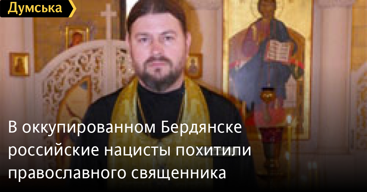 Российские военные провели обыск в доме священника ПЦУ Олега Николаева из оккупированного Бердянска, арестовали и вывезли его в неизвестном направлении.