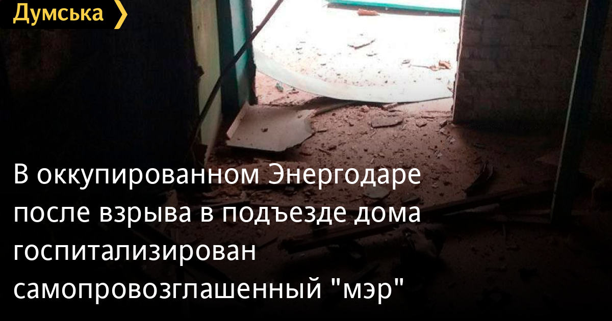 Коллаборант Андрей Шевчик госпитализирован в больницу после взрыва, который прогремел в его доме по улице Курчатова во временно оккупированном российскими нацистами Энергодаре.