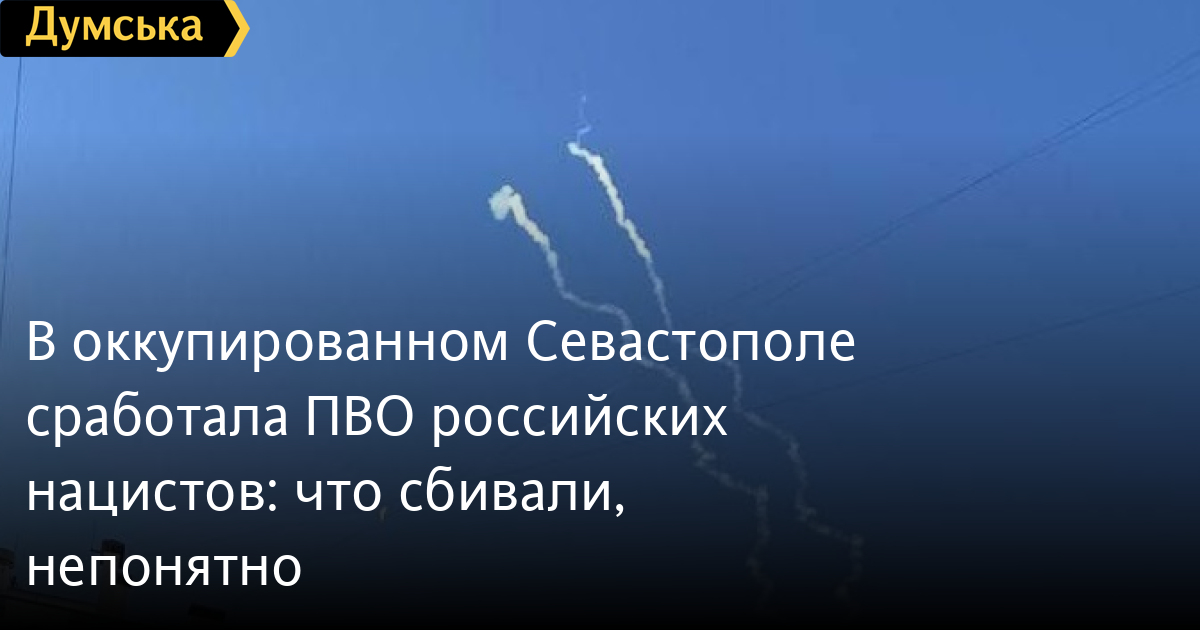 В оккупированном Севастополе сработала ПВО российских нацистов: что сбивали, непонятноСистема противовоздушной обороны сработала во временно оккупированном российскими нацистами Севастополе. Местные жители сняли пуск как минимум двух ракет. Что именно пытались сбить российские военные, не очень понятно. Возможно, это был «дружественный огонь» по чему-то своему, но не исключено, Сили обороны Украины решили продемонстрировать свой потенциал и способность наносить удары по глубокому тылу противника.