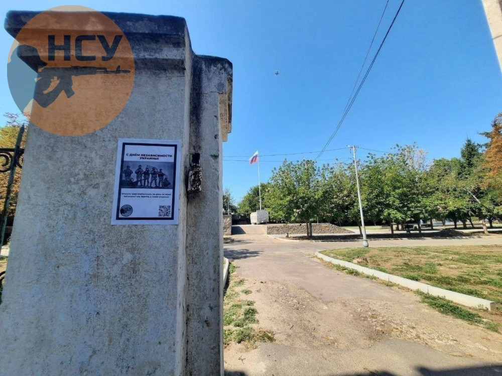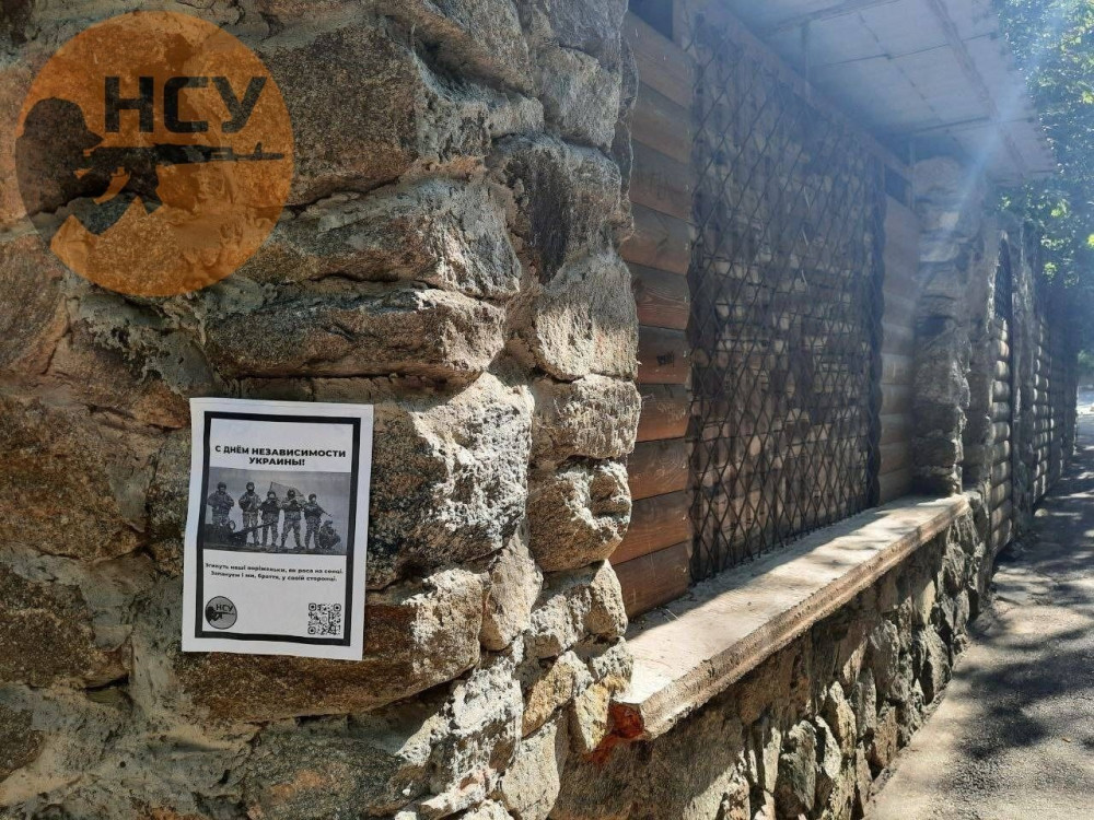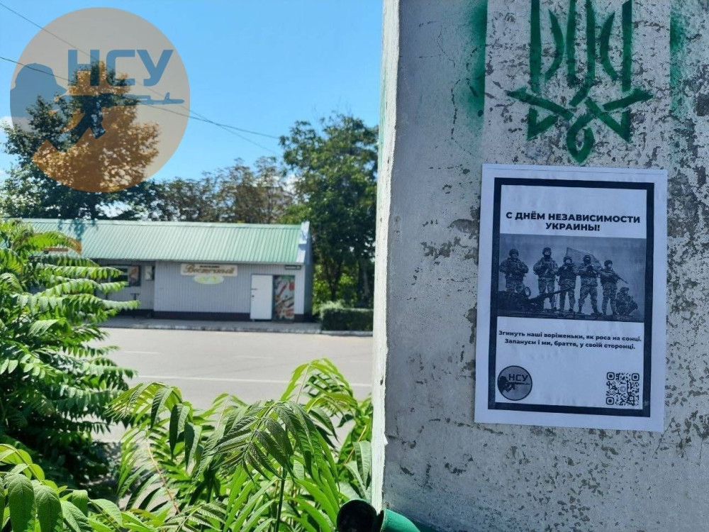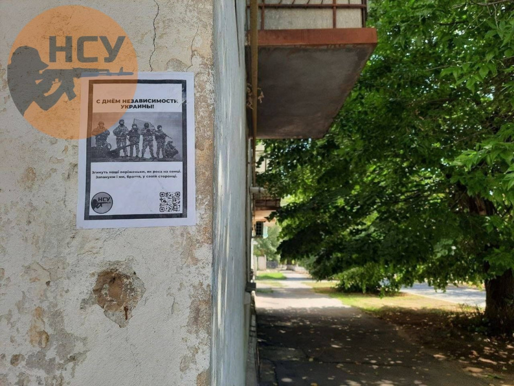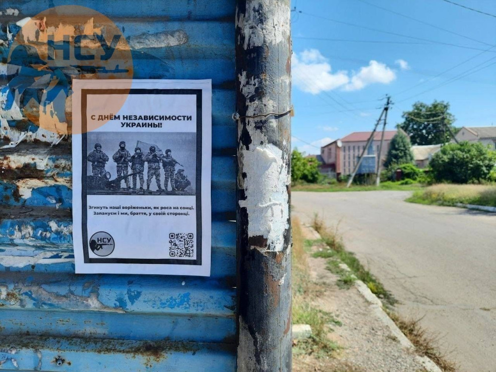 «Згинуть наші воріженьки, як роса на сонці, Запануєм і ми, браття, у своїй сторонці» — листівки з такими словами розклеїли партизани в окупованих містах Херсонської області до Дня Незалежності України.