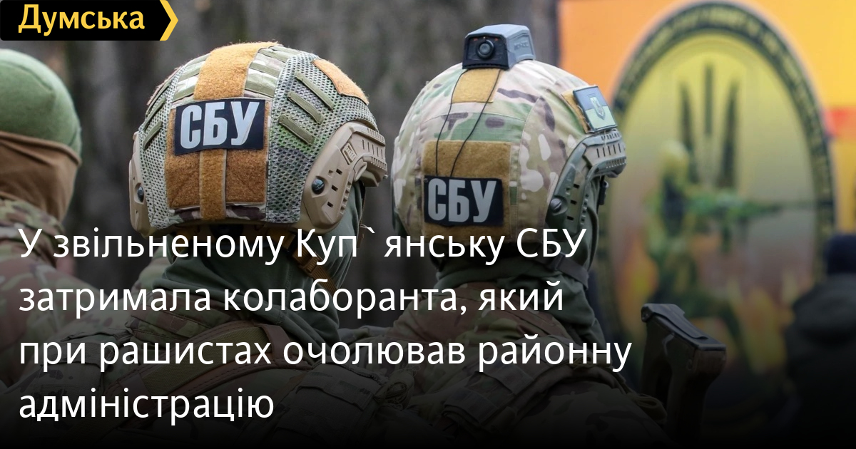 Оперативники СБУ затримали у Куп'янську 54-річного чоловіка, який під час окупації одним із перших погодився співпрацювати з росіянами та очолював «Кондрашівський територіальний відділ» окупаційної адміністрації Куп'янського району.