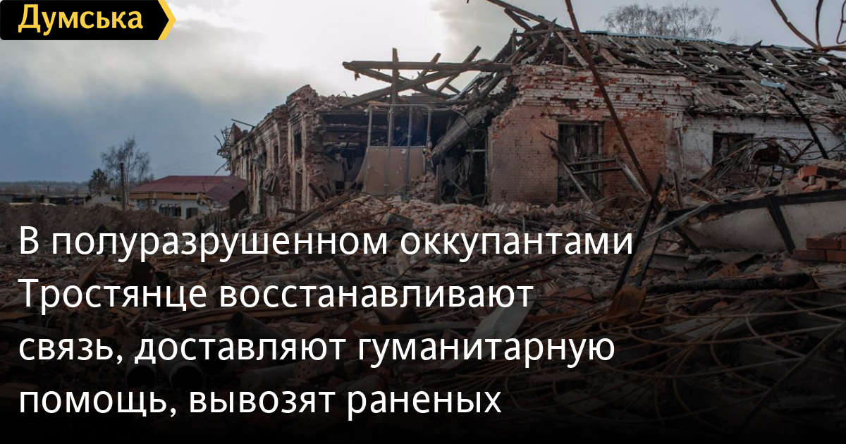 Как сообщил глава Сумской ОВА Дмитрий Живицкий, в Тростянце появилась связь – туда завезли спутниковый интернет Starlink и генераторы, завозится необходимая гуманитарная помощь, тяжело раненых горожан вывозят в ближайшие больницы, поскольку больница в Тростянце не работает. Также в городе оборудовали медицинский пункт для тех, кому необходима медицинская помощь.