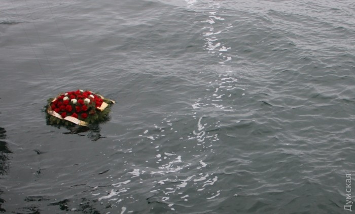 После минуты молчания на воду спустили венок.
