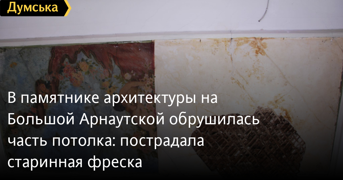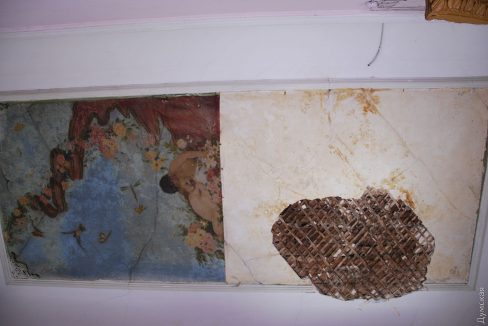 Старинная фреска пострадала в результате обрушения части потолка парадной дома №47 по Большой Арнаутской.