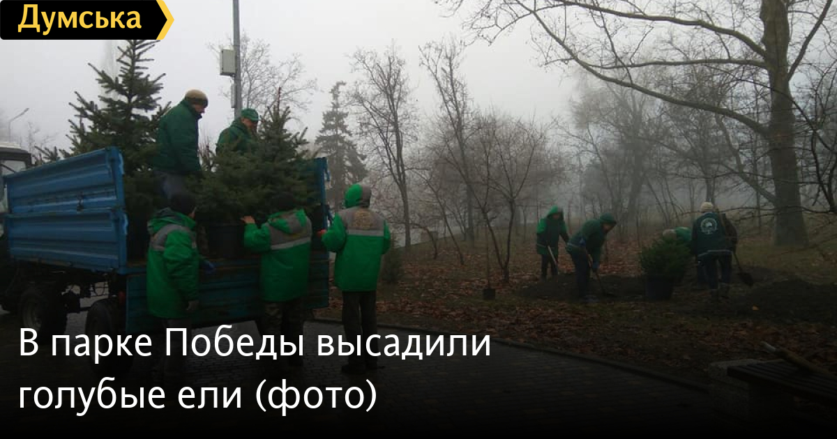 14 молодых елей высадили в парке Победы озеленители КП «Горзелентрест».