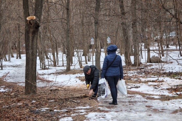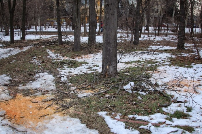 Вчера вечером в парке Победы сотрудники КП «Горзелентрест» начали санитарную подрезку деревьев.
