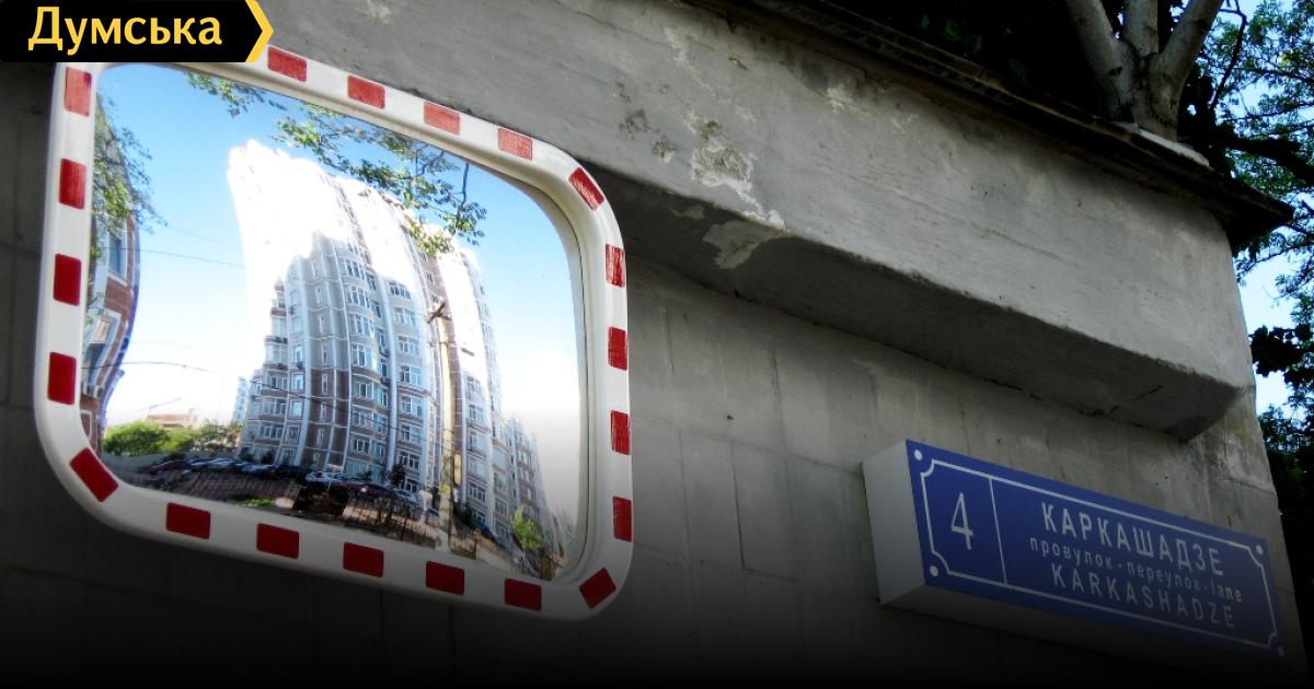 В Кирпичном переулке, которому горсовет в феврале присвоил имя строителя Гиви Каркашадзе, уже появились таблички с новым названием — на трех языках, русском, украинском и английском.