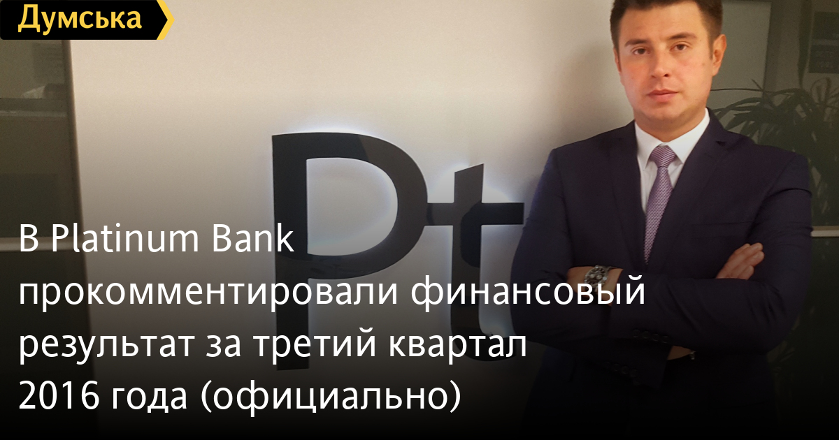 В Platinum Bank прокомментировали финансовый результат за третий квартал 2016 года (официально)Украинские банкиры считают период с октября по декабрь пиковым с точки зрения финансовых операций в розничном сегменте. Чтобы предложить своим клиентам разнообразные продуктовые новинки, подготовку к нему они начинают заранее. Подробнее об этом и о ситуации на финансовом рынке нам рассказал Павел Федотов, региональный директор Platinum Bank. Нацбанк регулярно сообщает о том, что банки сокращают свои долги перед регулятором. Этот факт трактуется в НБУ как один из признаков оздоровления банковской системы. У Platinum Bank есть подобные обязательства? Почему они возникли? Как и у множества отечественных финучреждений, обязательства Platinum Bank перед НБУ возникли в период нестабильной экономической ситуации в стране 2014-2015 гг. Очень важно понимать, что Нацбанк дает стабилизационные кредиты для поддержки ликвидности только платежеспособным банкам. В 2016 году Platinum Bank направил уже более 377 млн. грн. в счет погашения стабилизационного кредита НБУ, тем самым выплатив свыше 50% всей суммы займа. Все, кто следит за темой банков, не могли не заметить, что сейчас против Platinum Bank развернута информационная компания. Она касается многих факторов, в том числе и финансовых результатов за третий квартал 2016 года. Прокомментируйте их, пожалуйста. В последнее время некоторые СМИ проявляют особое внимание к нашему банку. Мы не исключаем, что распространение искаженных и недостоверных сведений в отдельных материалах является частью спланированной информационной кампании против Platinum Bank, которая продолжается на протяжении нескольких последних месяцев. В действительности, на финансовый результат за третий квартал 2016 года повлияла выдача банком почти 1 миллиарда кредитных средств клиентам, которые сейчас находятся на временно неподконтрольных нашей стране территориях и в зоне АТО, что повлекло за собой недополучение доходов в размере нескольких сотен миллионов гривен. Также из-за нестабильной экономической ситуации в стране и курсовых колебаний, нам пришлось провести масштабную реструктуризацию ипотечного валютного портфеля наших клиентов. Вышеперечисленные факторы сформировали отрицательный финансовый результат. Но благодаря увеличению капитала на более чем 203 млн. грн. в 2016 году банк имеет запас высоколиквидных активов, что позволяет ему выполнять свои обязательства. Мы продолжаем работу в штатном режиме в рамках утвержденной ранее бизнес-стратегии. Эксперты обсуждают одно из уникальных предложений Platinum Bank, которое предусматривает еженедельную возможность получать выплаты по депозитным программам. С момента запуска продукта на рынок прошел месяц. Можете рассказать о первых результатах подробнее? В октябре мы запустили новый депозитный продукт «Готівка щотижня». Вклад приносит дополнительный доход каждые семь дней. То есть человек, который открыл депозит во вторник, каждый последующий вторник будет получать по нему проценты. Если день начислений выпадает на выходные или праздничные дни, то в этом случае выплата процентов состоится в первый рабочий день после выходного. Срок вклада составляет от 31 до 548 дней. Несложно посчитать, что в случае короткого размещения средств проценты будут выплачены 4 раза, а в случае длительного − почти 80 раз. Недавно ваш банк про