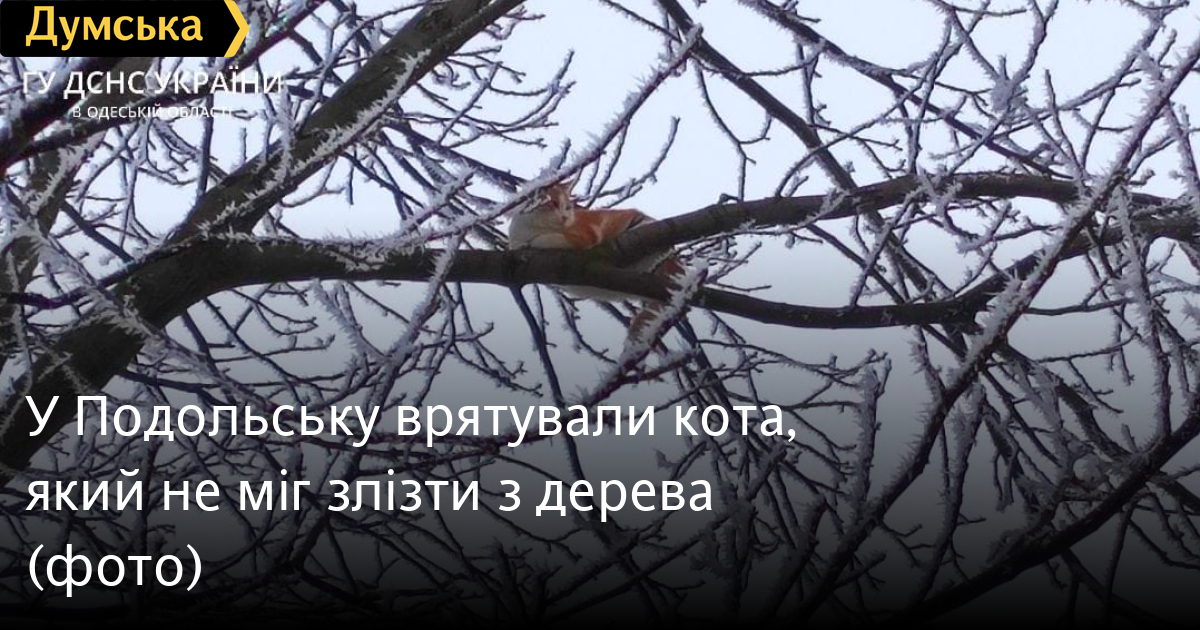 Коту, який заліз на дерево і не міг самостійно спуститися, допомогли рятувальники Подільська 13 січня.