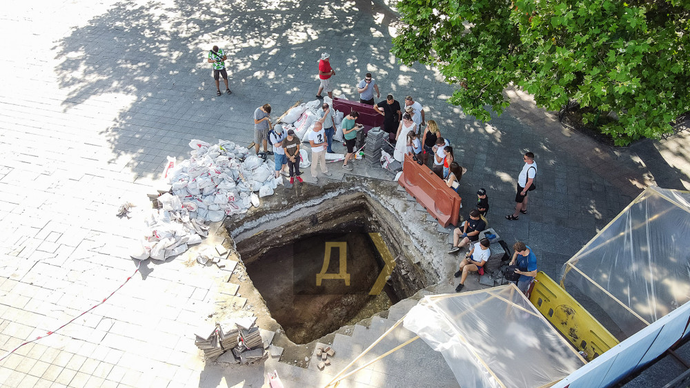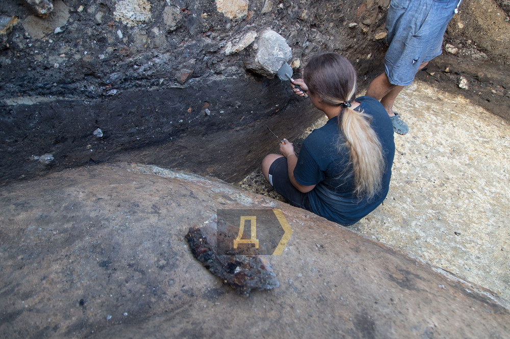 В минувшие выходные археологи завершили раскоп, заложенный в северной части площади у Потемкинской лестницы, в 25 метрах от памятника герцогу де Ришелье. Ученые остановились на глубине 3 метра 45 сантиметров от современной дневной поверхности, достигнув дна предполагаемого оборонительного рва османского Хаджибея.