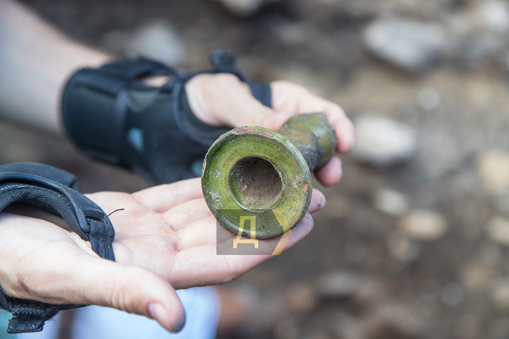 «Нашли огромное количество керамики, бутылки, некоторые с клеймами, которые мы читаем, — рассказывает историк. — Канделябры, бронзовые и керамические подсвечники, с десяток турецких трубок. Зафиксировали остатки полигональных известняковых блоков, оставшихся, скорее всего, от турецкой кладки, которую использовали вторично».