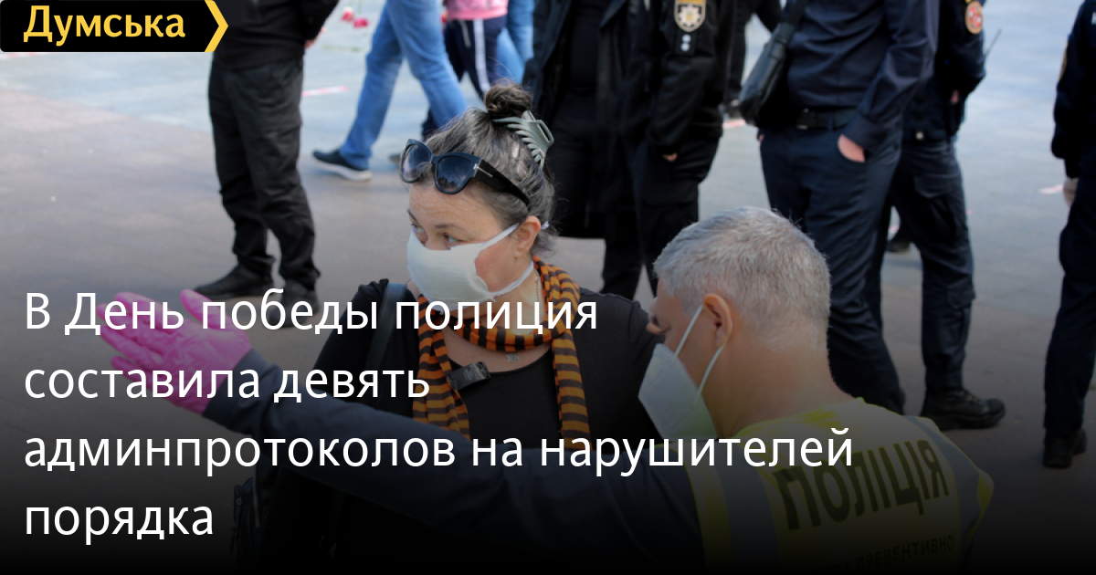 Как сообщили в пресс-службе ГУНП в Одесской области, всего 9 мая полицейские привлекли к административной ответственности восемь человек, на которых в целом составлено девять протоколов.