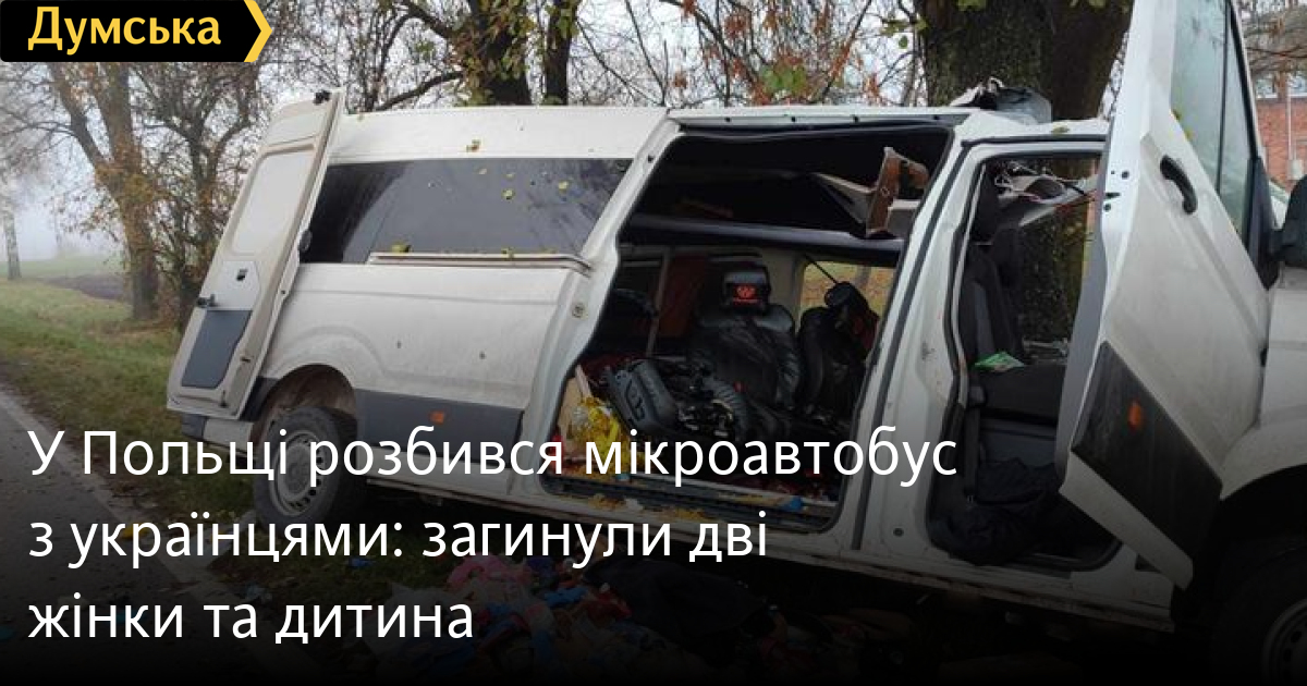У Польщі розбився мікроавтобус з українцями: загинули дві жінки та дитинаДві жінки і шестирічна дівчинка з України загинули в ДТП, що сталася в районі 4:30 ранку біля міста Хрубешув у Любленському воєводстві Польщі. Місцеві ЗМІ повідомляють, що водій мікроавтобуса виїхав на узбіччя, де машина врізалася в дерево. Загалом у бусі перебували десять осіб — усі громадяни України. Сімох постраждалих госпіталізували. Помітили помилку? Виділяйте слова з помилкою та натискайте control-enter Новини по цій темі: 30 серпня 2025: Машина вилетіла в кювет: мер Рені потрапив в аварію, його мати загинула, а маленький син у лікарні (фото) 18 серпня 2025: Троє загинули, один у лікарні: на трасі Одеса-Рені водій Mercedes не пропустив фуру (фото) 28 липня 2025: П'яний на "Ягуарі" або гіпертонік? Звільнений топ-посадовець одеської поліції хоче повернутися на службу 2 квітня 2025: В Одесі водій BMW спровокував аварію, в якій постраждали п`ятеро людей, і втік (фото, відео) |
