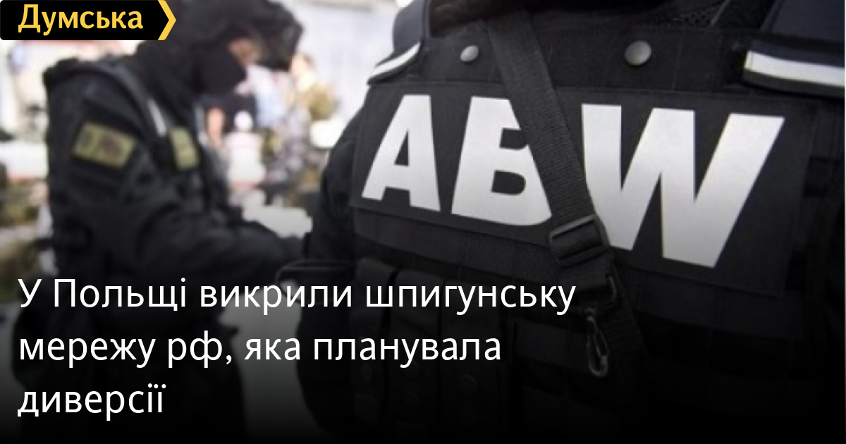 У Польщі викрили шпигунську мережу рф, яка планувала диверсіїШпигунську мережу, яка працювала на росію і мала готувати диверсії у Польщі, ліквідувало Агентство внутрішньої безпеки Польщі (ABW). Про це з посиланням на свої джерела пише RMF FM. Повідомляється, що на залізничних коліях та об'єктах національної критичної інфраструктури через діяльність мережі було оголошено тривогу. Такі заходи було вжито через те, що на важливих маршрутах і залізничних вузлах виявили приховані камери, які фіксували рух на шляхах і передавали зображення в мережу. Співробітники Агентства внутрішньої безпеки Польщі затримали шістьох іноземців «з-за східного кордону», які, ймовірно, пов'язані з російськими спецслужбами. У зв'язку з проведенням спецоперації співробітники служб і поліції працюють у режимі підвищеної готовності. Посилено заходи безпеки на стратегічно важливих залізничних шляхах країни, а також охорону ключових об'єктів критичної інфраструктури. СМЕРТЬ РОСІЙСЬКИМ ОКУПАНТАМ! Помітили помилку? Виділяйте слова з помилкою та натискайте control-enter |