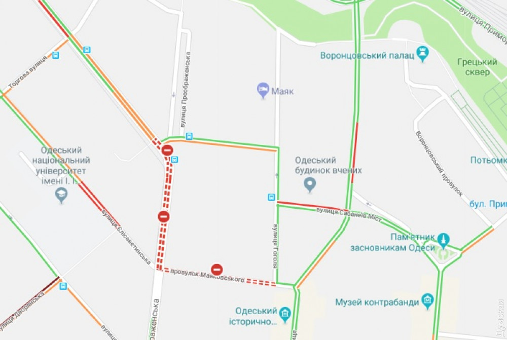 Согласно распоряжению и.о. мэра города Анатолия Орловского, в связи с этим закроют участок от Пастера до Софиевской. Работы продлятся до 1 июля. С Софиевской можно будет повернуть налево, в сторону моря, или проехать по переулку Некрасова на Гоголя. С Елисаветской можно будет повернуть направо, в сторону Горсада. Маяковского тоже перекроют.